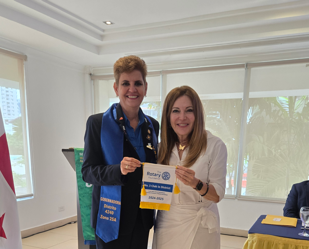 El Club Rotario de Panamá recibió el reconocimiento como “Tercer Club del Distrito en Contribuciones per Cápita” al Fondo Anual de la Fundación Rotaria de Rotary International para el período 2024-2025. La distinción fue entregada por Eugenia Echeverría, Gobernadora del Distrito 4240, que agrupa clubes de Costa Rica, El Salvador, Nicaragua y Panamá.