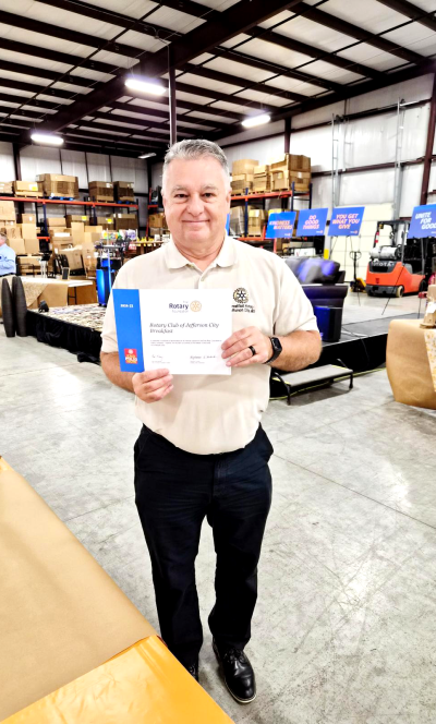 El Rotary Club of Jefferson City Breakfast ha sido galardonado con el Significant International Service Award, convirtiéndose en el único club del Distrito 6080 en recibir este prestigioso reconocimiento. El CR Greg Frank recibió recientemente la distinción de manos del Gobernador 2024-2025 del Distrito, Rowland Geddie.
