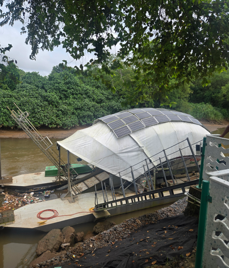 Durante el recorrido, los visitantes observaron el funcionamiento de la máquina de recolección de desechos WANDA. Según les explicaron y nos comparte el CR José, “cuando el río Juan Díaz crece, la basura puede cubrir hasta 50 m², y el proceso de evacuación puede tomar una semana”. Además, aprendieron sobre los tipos de plástico (como el polietileno y el polipropileno) y los diferentes tiempos de degradación, que pueden ir desde meses hasta varios lustros.